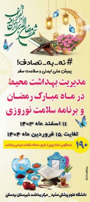 مسئول سلامت محیط وکار مرکز بهداشت نیز از آغاز مدیریت بهداشت محیط در ماه مبارک رمضان و سلامت نوروزی از ۱۱ اسفند ماه سال ۱۴۰۳ الی ۱۵ فروردین ۱۴۰۴ خبر داد.