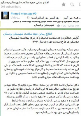 گزارش عملکرد واحد سلامت محیط و کار مرکز بهداشت شهرستان بردسکن در طرح سلامت نوروزی سال ۱۴۰۴