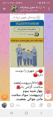 باشد که در پرتو همکاری و همدلی، شاهد ارتقاء بیشازپیش شاخصهای سلامت، افزایش آگاهی عمومی و توسعه فرهنگ خودمراقبتی و ارتقا سلامت در جامعه باشیم.