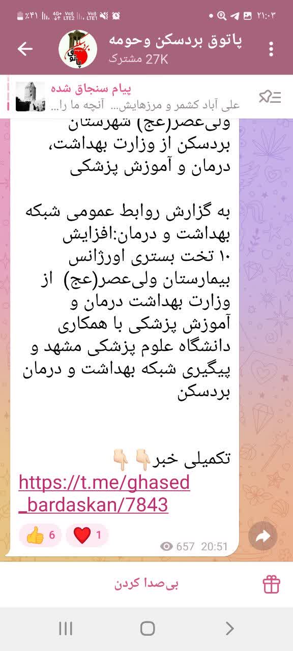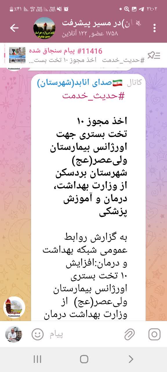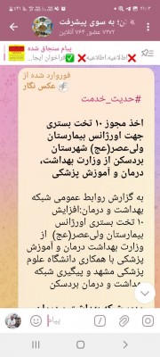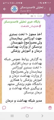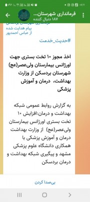 اخذ مجوز ۱۰ تخت بستری جهت اورژانس بیمارستان ولیعصر(عج) شهرستان بردسکن از وزارت بهداشت، درمان و آموزش پزشکی