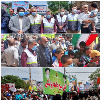 مدیریت محترم شبکه بهداشت و درمان شهرستان بردسکن به همراه معاونین بهداشت و درمان و پرسنل شبکه بهداشت و بسیجیان کانون بسیج جامعه پزشکی در راهپیمایی روز جهانی قدس شرکت نمودند.