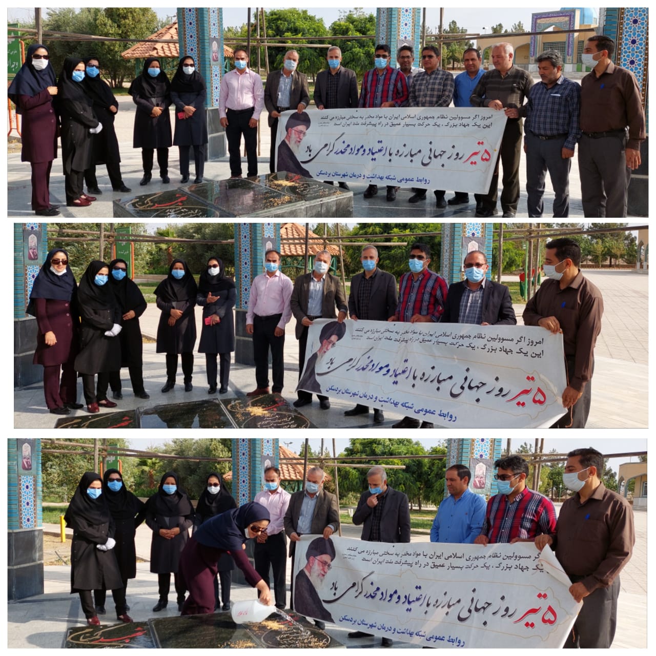 پرسنل شبکه بهداشت و درمان شهرستان بردسکن همزمان با دومین روز از هفته مبارزه با مواد مخدر که با شعار میثاق با شهدا ، یاریگران زندگی و نه به اعتیاد می باشد با حضور در گلزار دو شهید گمنام تدفین شده در پارک ولی عصر (عج) ضمن عطرافشانی و غبارروبی با قرائت فاتحه ادای احترام نمودند.