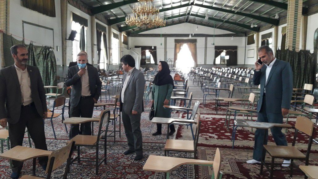 بازدید ریاست محترم مرکز بهداشت و کارشناسان مسئول واحد سلامت محیط و کار و واحد سلامت مدارس و جوانان مرکز بهداشت و مدیر محترم آموزش و پرورش و معاون محترم فرماندار شهرستان از محل حوزه برگزاری کنکور سراسری