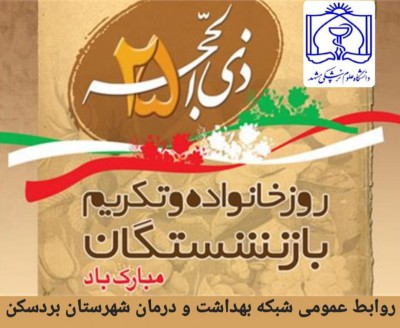 مدیر محترم شبکه بهداشت و درمان شهرستان بردسکن در پیامی فرارسیدن روز خانواده و تکریم بازنشستگان را تبریک عرض نمودند؛