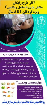 ضمن رعایت پروتکل های بهداشتی جهت دریافت مکمل ویتامین آ به همراه کودک و کارت مراقبت بهداشتی به مراکز خدمات جامع سلامت و خانه های بهداشت مراجعه نمائید.