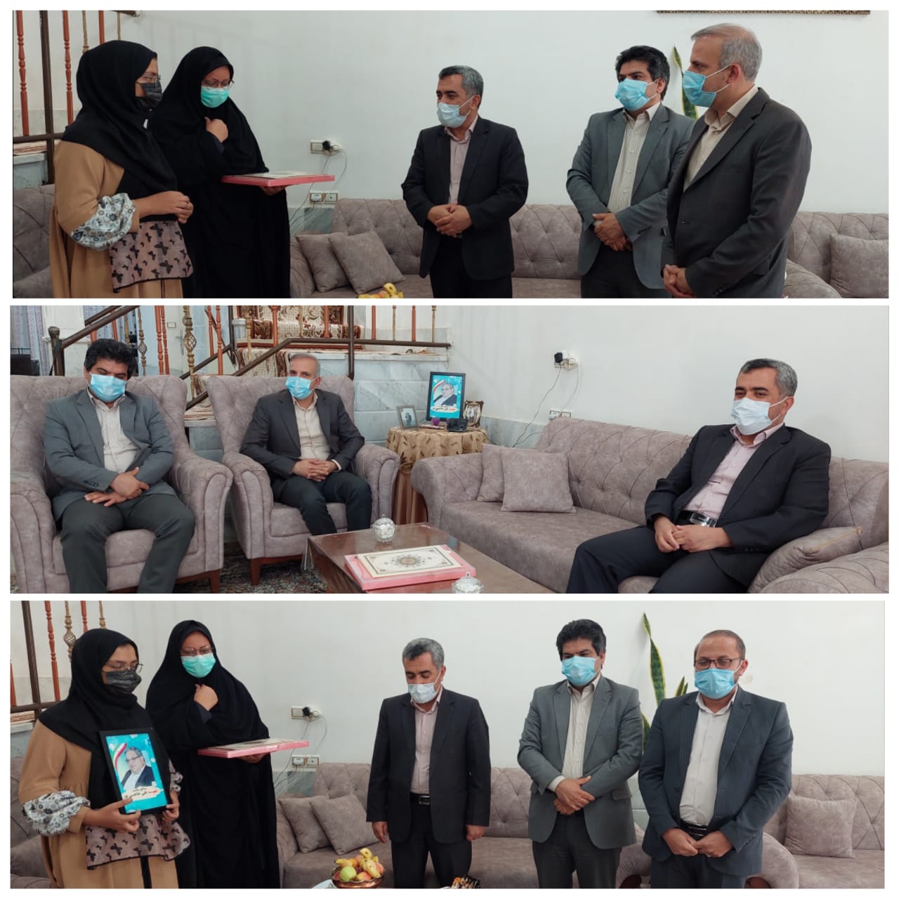 در این دیدار که ریاست محترم مرکز بهداشت، مسئولین حراست و روابط عمومی حضور داشتند لوح یادبودی به خانواده شهید اهدا گردید.