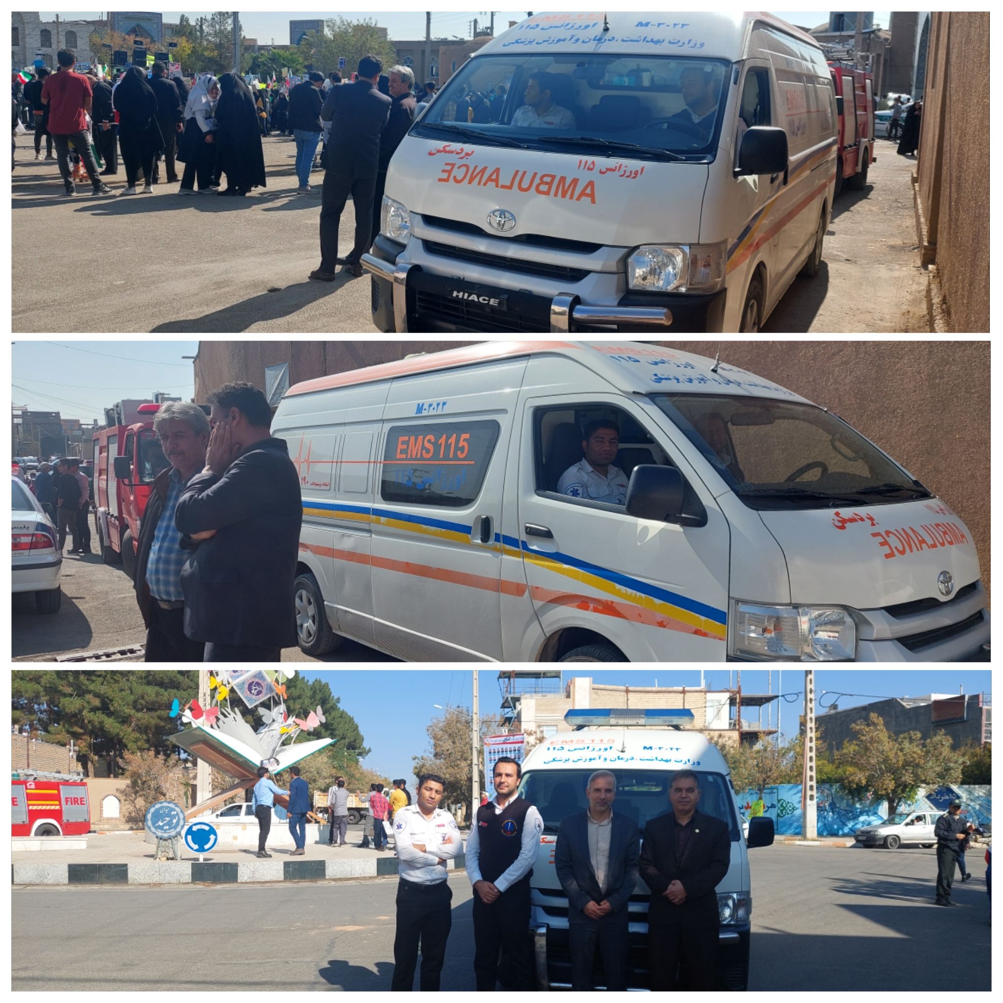 پوشش فوریت های پزشکی مراسم یوم الله ۱۳ آبان شهرستان بردسکن که از محل میدان توحید تا مصلی نماز جمعه برگزار شد توسط پرسنل اورژانس ۱۱۵ شهری بردسکن انجام گرديد. همکاران : آقایان مصطفی یوسفی و سجاد عباسی روابط عمومی شبکه بهداشت و درمان شهرستان بردسکن