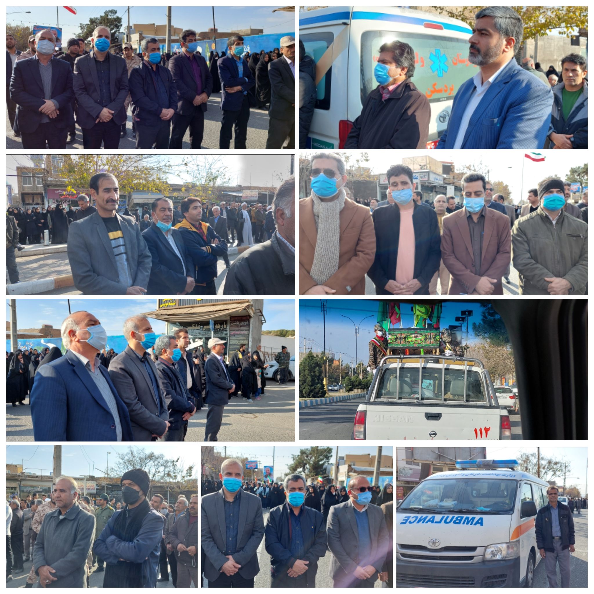 مدیر محترم شبکه بهداشت و درمان ، معاون محترم بهداشتی به همراه پرسنل شبکه بهداشت ، مرکز بهداشت و بیمارستان ولی عصر(عج) همراه مردم ولایتمدار و شهید پرور شهرستان بردسکن در مراسم تشییع شهید گمنام تازه تفحص شده شرکت نمودند این مراسم از محل پارکینگ شفیع آباد تا تقاطع خیابان مطهری و عدالت به صورت رژه خودرویی و از چهارراه عدالت و مطهری بر روی دستان مردم شهید پرور و انقلابی شهرستان تشییع شد از دیگر برنامه های این مراسم روحانی سخنرانی امام جمعه معزز شهرستان و مدیحه ثرایی توسط ذاکر اهل بیت بود.