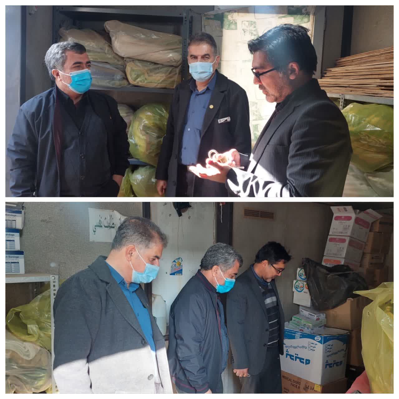همزمان با پنجم دیماه روز ایمنی در برابر زلزله و کاهش خطر در برابر بلایا مدیریت محترم شبکه بهداشت و درمان به همراه ریاست محترم بیمارستان و دبیر کمیته بحران بیمارستان از محل انبار تجهیزات بحران بازدید نمودند در این بازدید جناب آقای دکتر محمدرضا رضانژاد ضمن بازدید مطالبی در ارتباط با آمادگی در برابر بحران ها بیان نمودند و اظهار داشتند تمامی اعضا باید از آمادگی بالایی در برابر بحران برخوردار باشند تا در صورت اتفاق ناگوار و ایجاد بحران بهترین اقدامات به همشهریان ارائه گردد.