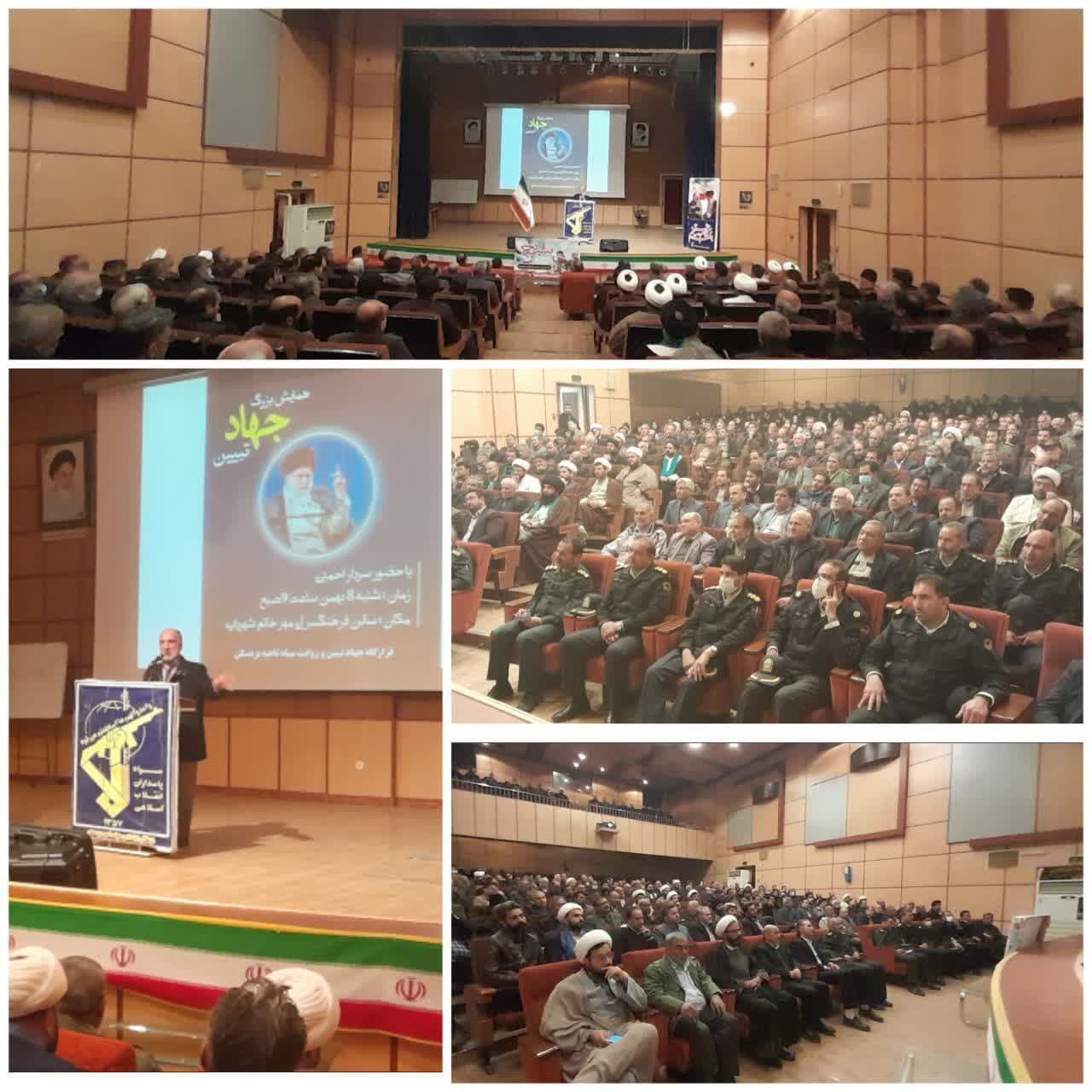 همایش بزرگجهاد تبیین به همت قرارگاه جهاد تبیین و سپاه شهرستان در محل فرهنگسرا برگزار گردید و سخنران این همایش سردار احمدی فرمانده اسبق سپاه امام رضا (ع) بودند که در ارتباط با جهاد تبیین به ایراد سخنرانی پرداختند.
