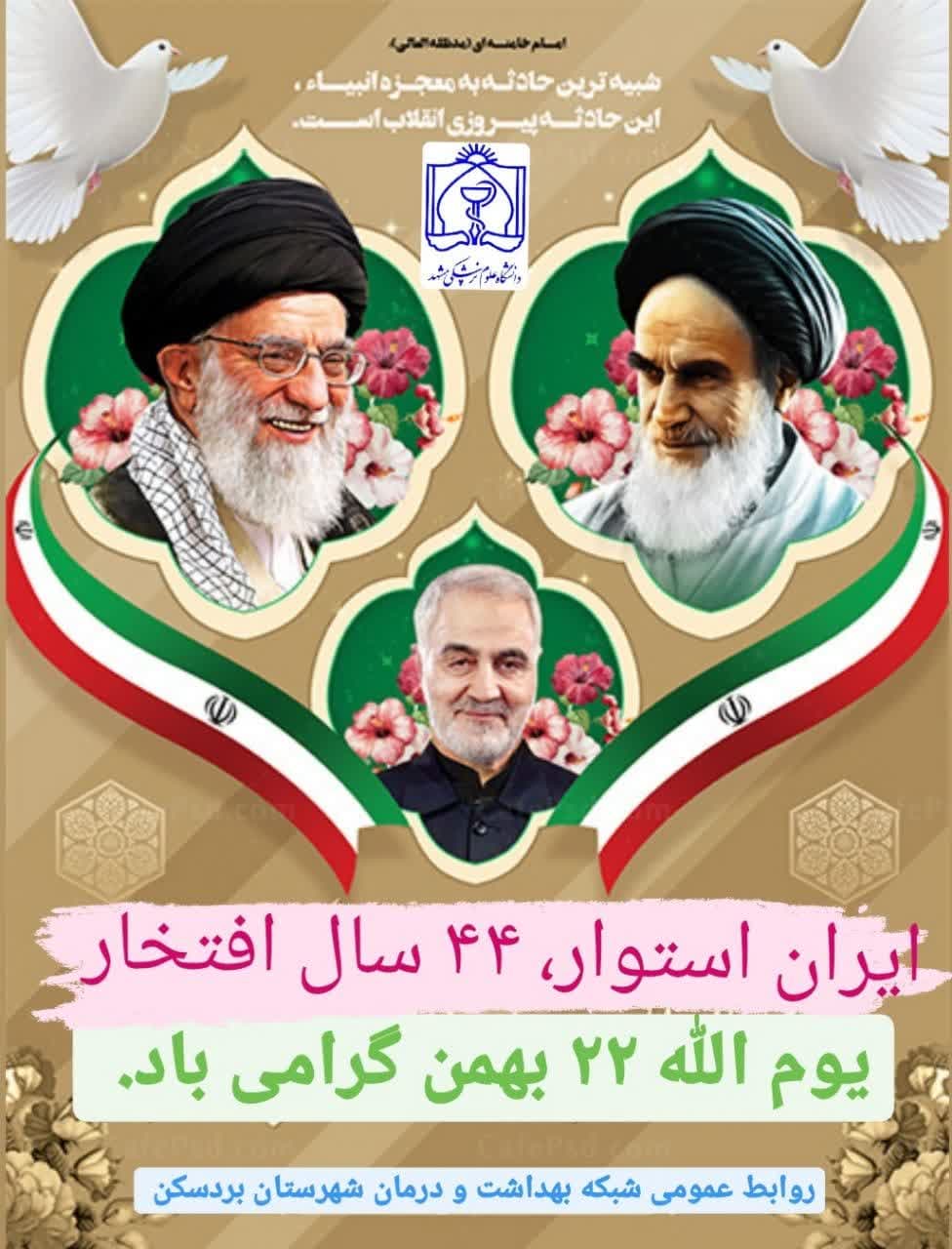 🌹🌹 یوم الله ۲۲ بهمن یادمان حماسه پیروزی، روز استحکام پایههای انقلاب، روز تجدید میثاق با آرمانهای حضرت امام (ره)، روز بیعت مجدد با رهبر معظم انقلاب اسلامی حضرت آیت الله امام خامنه ای گرامی باد.🌹🌹