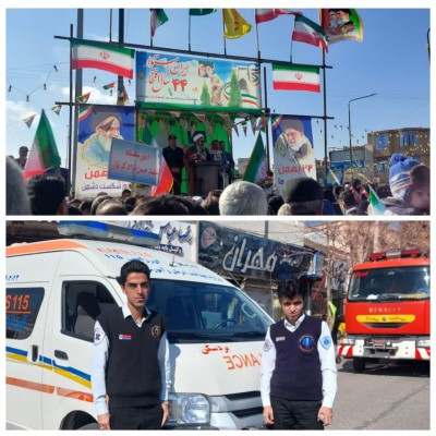 پوشش فوریت های پزشکی مراسم راهپیمایی یوم الله ۲۲ بهمن توسط پرسنل اورژانس ۱۱۵ شهرستان بردسکن