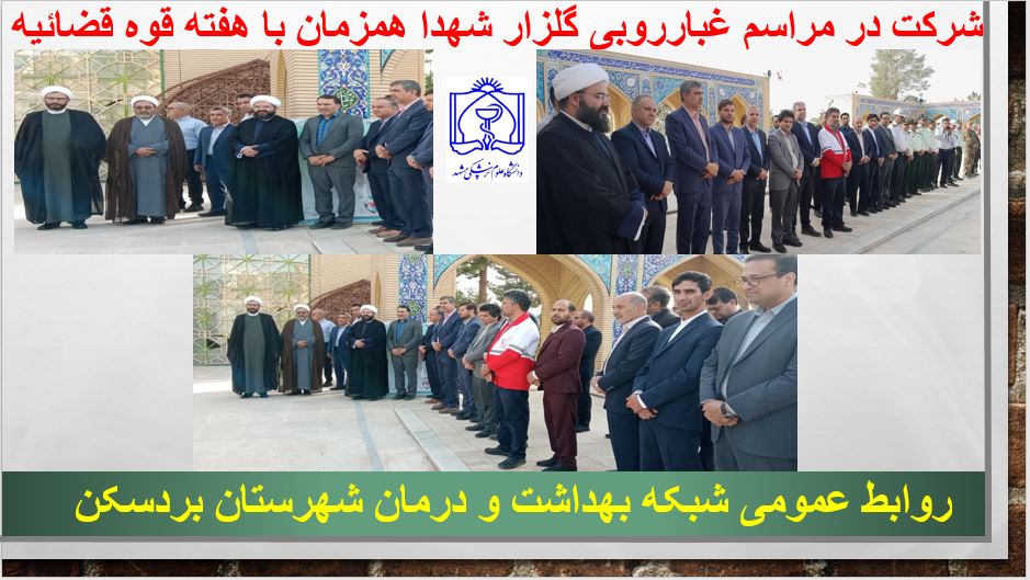 به مناسبت سالروز شهادت آیت الله دکتر بهشتی و هفتاد و تن از یارانش و هفته قوه قضائیه امام جمعه محترم شهرستان بردسکن ، حجت الاسلام نیک بین نماینده محترم مردم در مجلس شورای اسلامی ، معاون فرماندار محترم ، ریاست محترم دادگستری ، مدیریت محترم شبکه بهداشت و درمان، ریاست محترممرکز بهداشت ،مسئولین حراست و روابط عمومی و جمعی از مسئولین در محل گلزار شهداء با مقام شامخ شهداء ادای احترام نمودند.