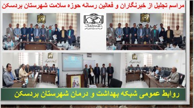 مدیر شبکه بهداشت و درمان بردسکن خبرنگاران را سربازان خط مقدم بهداشت و اطلاع رسانی و یار و یاور حوزه سلامت دانست و نقش خبرنگاران را در حوزه آموزش های عمومی مهم و تاثیر گذار اعلام کرد.دکتر محمدرضا رضانژاد انتقادهای خبرنگاران را سازنده دانست و گفت از مصاحبه کردن با خبرنگاران ابایی ندارم چرا که انتقادهای منصفانه و سازنده خبرنگاران میتواند در بدنه مدیریتی یک اداره باعث بالا بردن کارایی آن دستگاه شود. وی از خبرنگاران خواست در راستای توسعه و پیشرفت حوزه سلامت بردسکن به بیان خدمات انجام شده دولت بپردازند و به عنوان یک پل ارتباطی بین مردم و مسئولان صادقانه خدمات حوزه بهداشت و درمان را منعکس کنند. وی اظهار داشت خبرنگاران به عنوان یک مشاور و افسران جبهه اطلاع رسانی در حوزه بهداشت نقش بسزایی دارند و همه باید در راستای ارتقای فرهنگ بهداشت عمومی مردم بیش از پیش اهتمام جدی داشته باشیم.رضا ذبیحی رئیس بیمارستان ولیعصر بردسکن از زحمات و خدمات اصحاب رسانه در حوزه بهداشت و درمان این شهرستان تقدیر و بر اهمیت کار خبرنگاری نیز مطالبی را بیان کرد.وی افزود خبرنگاران زبان گویای مردم میباشند که میطلبد در حوزه اطلاع رسانی بیشتر مورد توجه قرار بگیرد.حسین امامیان رئیس مرکز بهداشت بردسکن با بیان اینکه خبرنگاران چشم بینایی حوزه بهداشت و درمان می باشند گفت خبرنگاران میتوانند در راستای رفع مشکلات حوزه بهداشت درمان شهرستان نقش تاثیرگذاری داشته باشند و توجه مدیران استانی و کشوری را به این شهرستان بیشتر جلب کنند. وی با بیان اینکه در حوزه سواد سلامت در بخش بهداشت و درمان دچار یک طوفان اطلاعاتی شدهایم افزود علی رغم اینکه در شهرستان بردسکن اقدامات بسیار خوبی در حوزه بهداشت درمان صورت گرفته است ولی همچنان با یک چالش و تنش در حوزه بهداشت درمان شهرستان مواجه هستیم.امامیان گفت در سیستم بهداشت درمان شهرستان براساس مولفههای اعلام شده تنها ۲۵ درصد در سیستم بهداشت درمان مردم سهم دارد و ۷۵ درصد سلامت مردم برعهده دیگر دستگاههای اجرایی و خدماتی میباشد.در پایان این مراسم از خبرنگاران فعال در حوزه بهداشت درمان شهرستان بردسکن تجلیل به عمل آمد.
