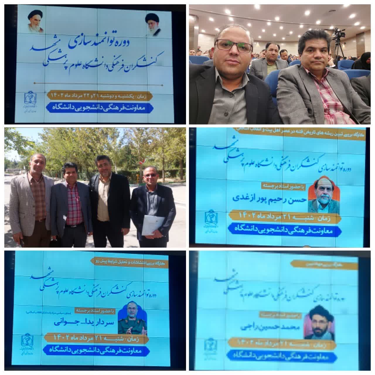 دوره توانمند سازی کنشگران دانشگاه جهت معاونین دانشگاه ، اعضای هیئت علمی، مدیران دانشگاه و واحدها ، مسئولين روابط عمومی ها ، دبیران شورای های امر به معروف و نهی از منکر واحدها، رابطین قرآنی واحدها طی مدت دو روز در تاریخ های ۲۱ و ۲۲ مرداد توسط معاونت فرهنگی دانشجویی دانشگاه در محل تالار رازی در حال برگزاری است.
