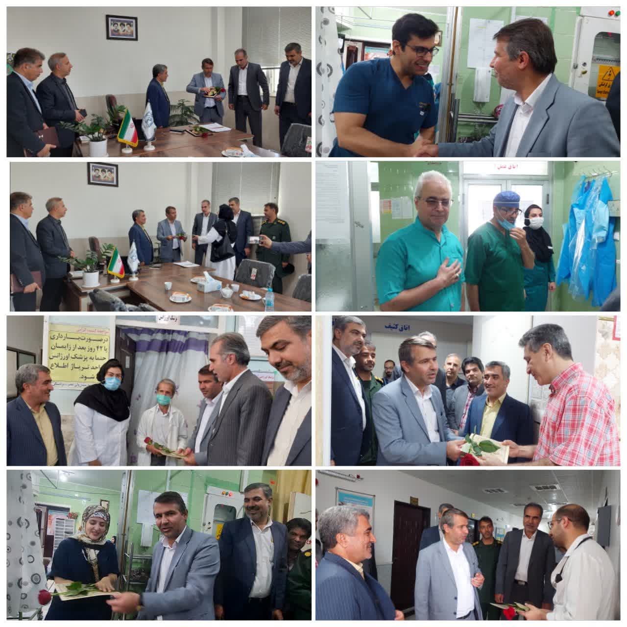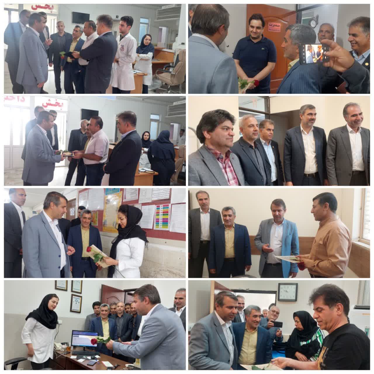 فرماندار شهرستان و مدیر شبکه بهداشت و درمان با حضور در بیمارستان ولی عصر (عج) ، مرکز خدمات جامع سلامت شهری روستایی طالقانی، کلینیک تصویربرداری دکتر محمد زارع مهرجردی، درمانگاه نبوت و مطب پزشکان شهرستان حضور یافتند و ضمن تبریک روز پزشک با اهدا لوح سپاس از زحمات تجلیل نمودند.