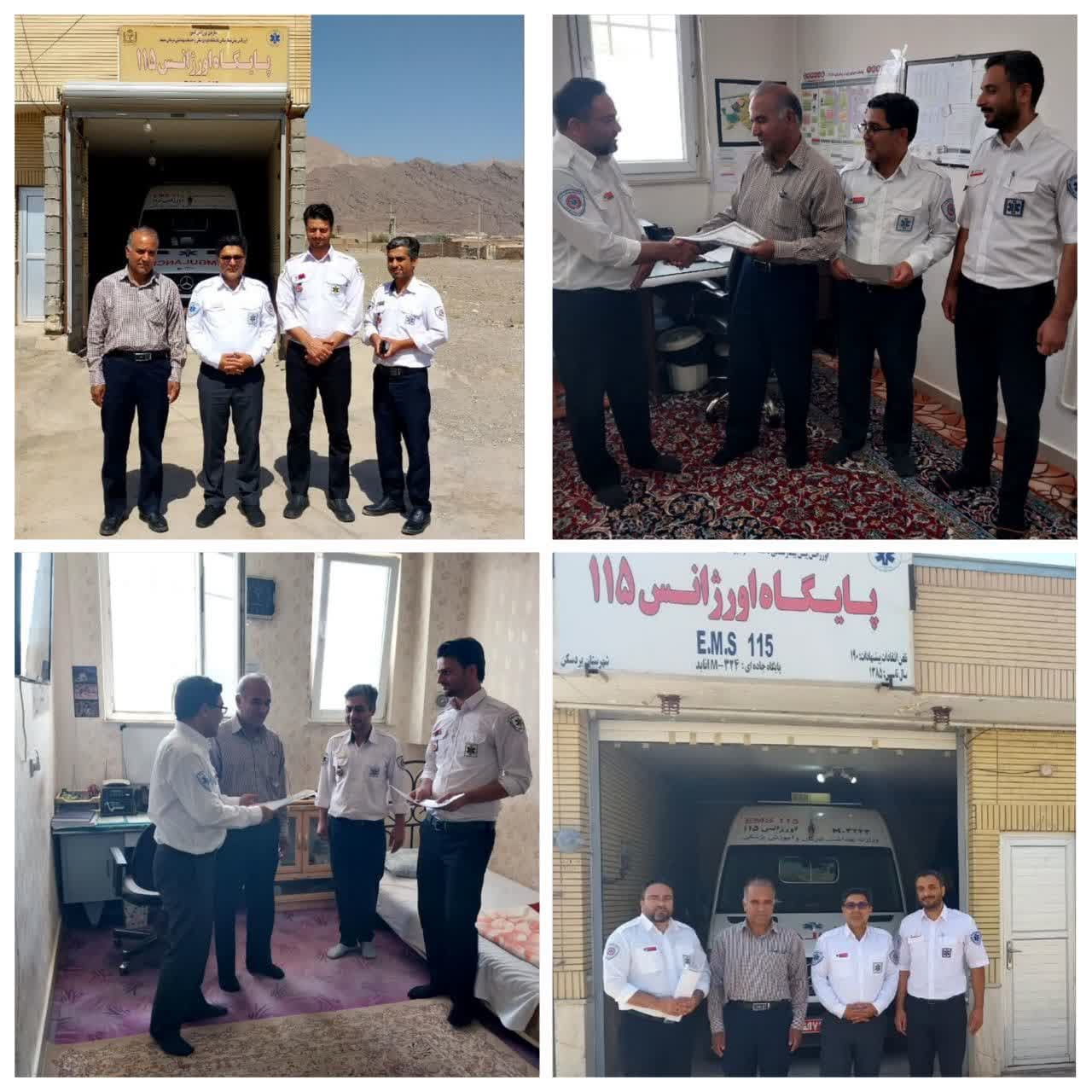 تجلیل از زحمات پرسنل اورژانس ۱۱۵ پایگاه های اورژانس پیش بیمارستانی جاده ای انابد و درونه توسط مسئول اورژانس ۱۱۵ و مدیر پرستاری بیمارستان ولی عصر (عج) بردسکن همزمان با روز فوریت های پزشکی انجام شد.