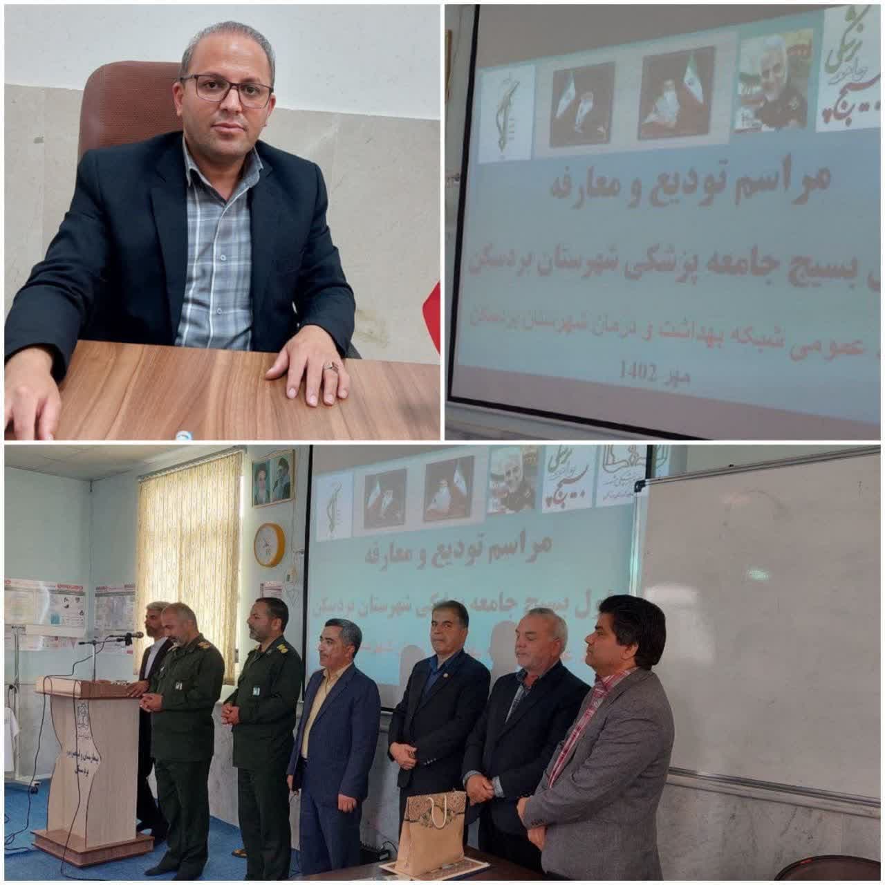 در پایان به پیشنهاد مدیر شبکه بهداشت و درمان و با ابلاغ فرمانده ناحیه مقاومت بسیج سپاه عباس احمدپور به عنوان مسئول جدید بسیج جامعه پزشکی شهرستان بردسکن منصوب و از زحمات حسن رجب پور که به افتخار بازنشستگی نائل آمدند قدردانی شد.