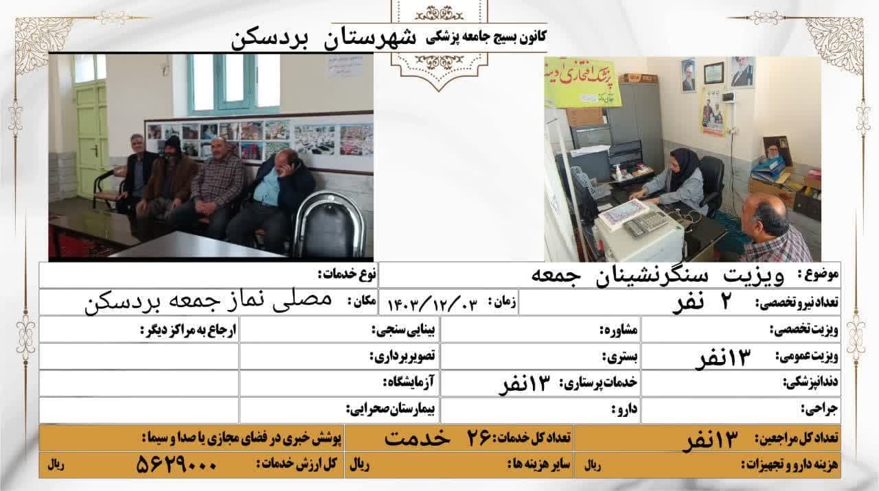 ویزیت سنگرنشینان آدینه در محل مصلی نماز جمعه توسط پزشکعمومی و ارائه مراقبت های بهداشتی و درمانی توسط سرکار خانمدکتر صدقی پزشکافتخاری آدینه