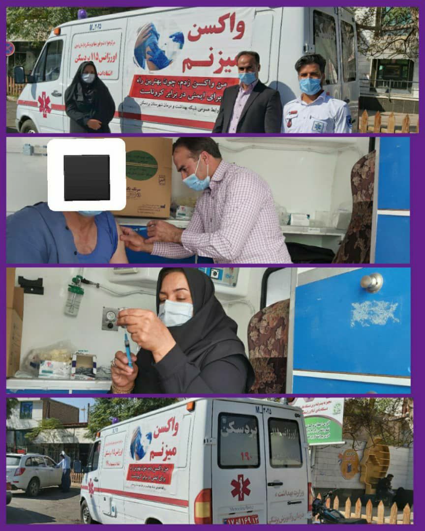 تزریق واکسن توسط تیم سیار واکسیناسیون مستقر در میدان مرکزی شهرستان بردسکن .