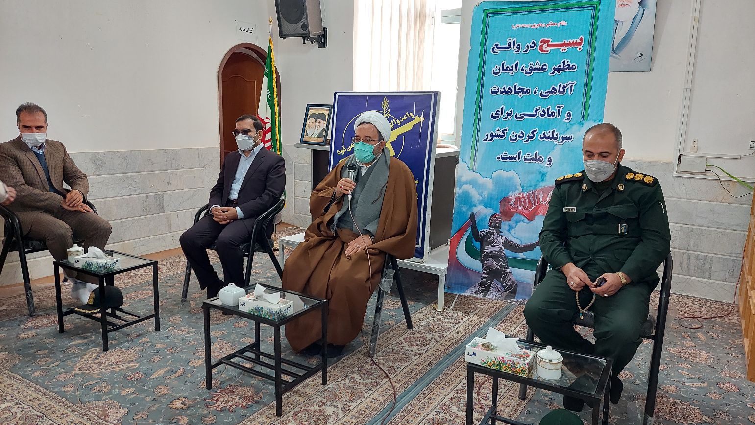 دیدار صمیمی فرمانده محترم سپاه ،فرماندار محترم ، مدیریت محترم شبکه و مسئولین ادارات با امام جمعه محترم شهرستان بردسکن در اولین روز از هفته بسیج.در این دیدار امام جمعه محترم حضرت حجت الاسلام علی اصغر امینی ضمن تبریک هفته بسیج افزودند بسیج نقش سازنده ای در توسعه،عمران و آبادانی کشور را دارد،وهر جا که کاری روی زمین مانده است بدون نام نشان خدمت می کند وکار مانده را به سرانجام می رساند.حضرت حجت الاسلام امینی بابیان اینکه بسیج در سیل ،زلزله ،ویروس کرونا و..به عنوان اولین نیروهمیشه در کنار مردم است.در این دیدار مسئول کانون بسیج جامعه پزشکی و روابط عمومی حضور داشتند. روابط عمومی شبکه بهداشت و درمان و کانون بسیج جامعه شهرستان بردسکن