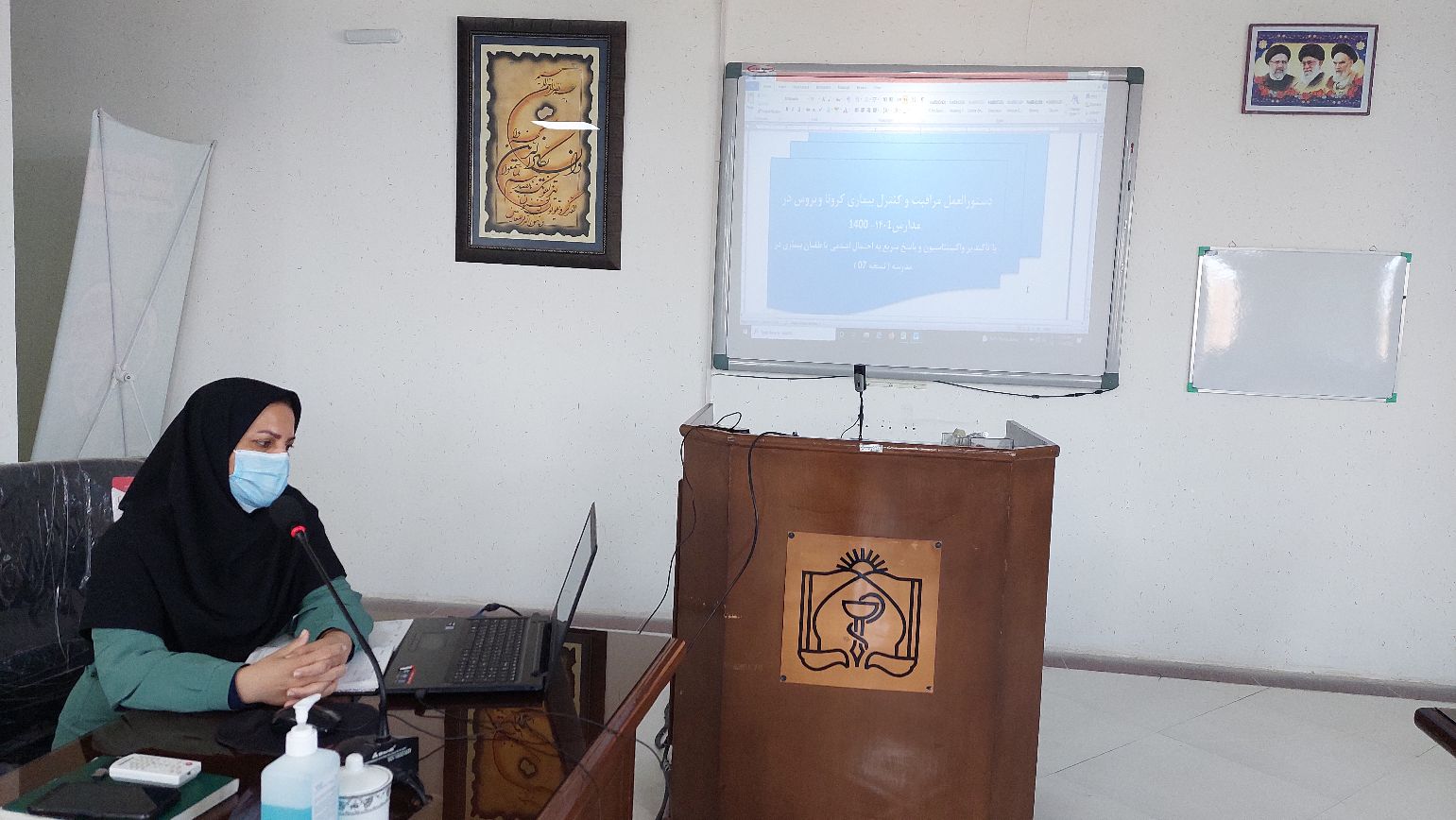 برگزاری جلسه کارشناس مسئول واحد سلامت جوانان، نوجوانان و مدارس مرکز بهداشت سرکار خانم نوری با مراقبین سلامت مراکز خدمات جامع سلامت شهری و روستایی شهرستان بردسکن در ارتباط با دستورالعمل مراقبت و کنترل بیماری کرونا ویروس در مدارس.در این جلسه باتوجه به دستورالعمل، بر واکسیناسیون و پاسخ سریع به احتمال اپیدمی با طغیان بیماری در مدارس تاکید شد