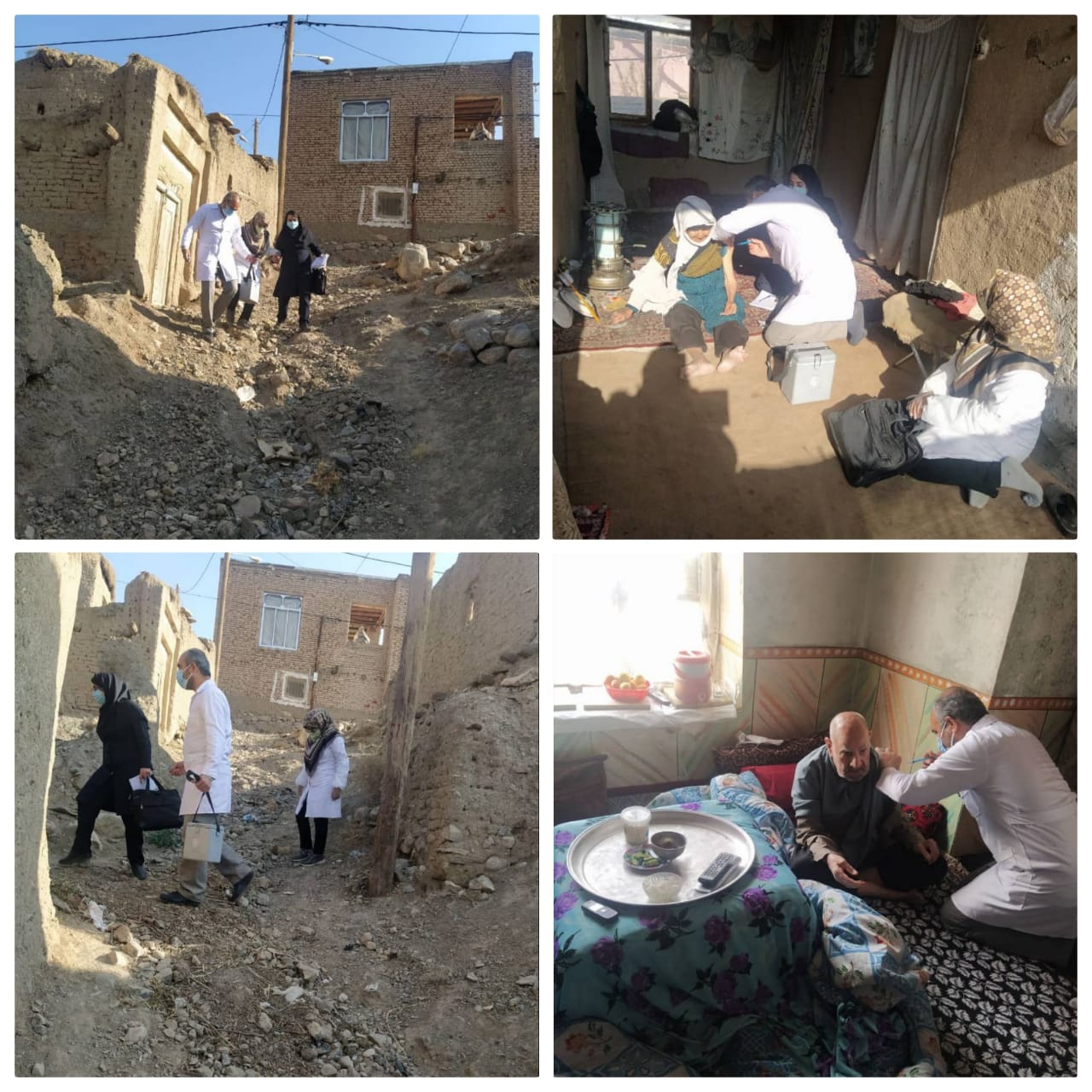 واکسیناسیون خانه به خانه برای لکه گیری نوبت اول و همچنین پیگیری نوبت دوم و سوم توسط تیم پزشکی و مراقبتی مرکز خدمات جامع سلامت روستایی کبودان شهرستان بردسکن در جمعیت روستایی تحت پوشش.