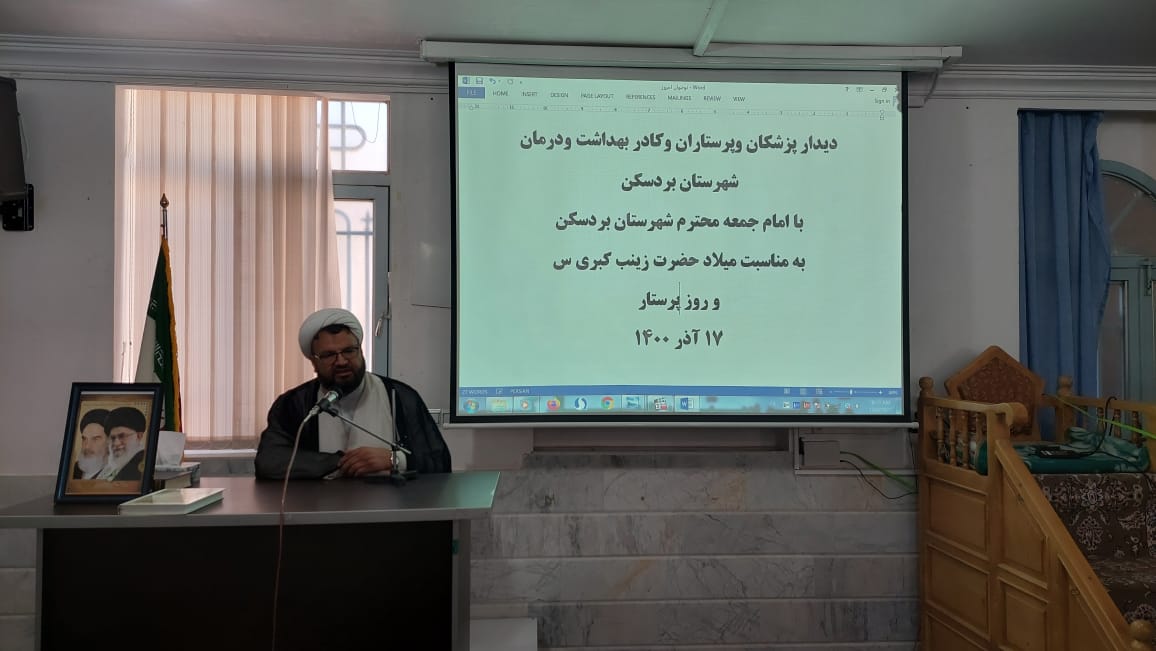 در مراسم دیدار با امام جمعه معزز شهرستان در اولین روز از هفته پرستار رئیس محترم ستاد نماز جمعه بردسکن ضمن عرض خیر مقدم و تبریک ولادت حضرت زینب وروز پرستار گفتند:شورای سیاست گذاری ائمه جمعه کشور برنامه های ویژه ای برای این روز بزرگ خواهد داشت.