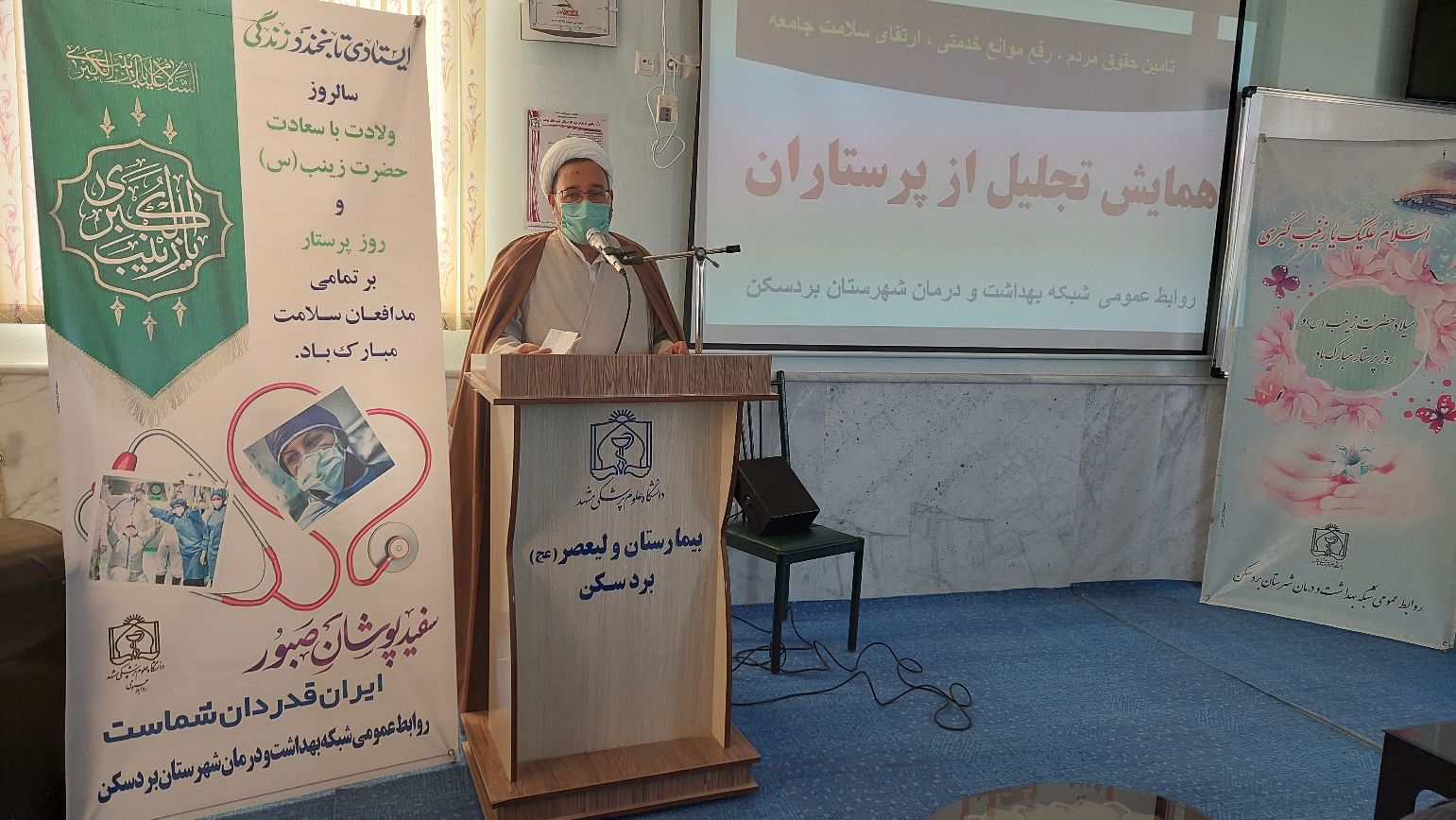 حجت الاسلام نیک بین نماینده مردم شریف شهرستان های بردسکن ،کاشمر، خلیل آباد و کوهسرخ در مجلس شورای اسلامی درسخنانی به جایگاه پرستاران اشاره کردند و گفتند: کار پرستاری کاری بس سخت و دشوار است و بیشترین تاثیر را در درمان بیماران کادر پرستاری دارند.