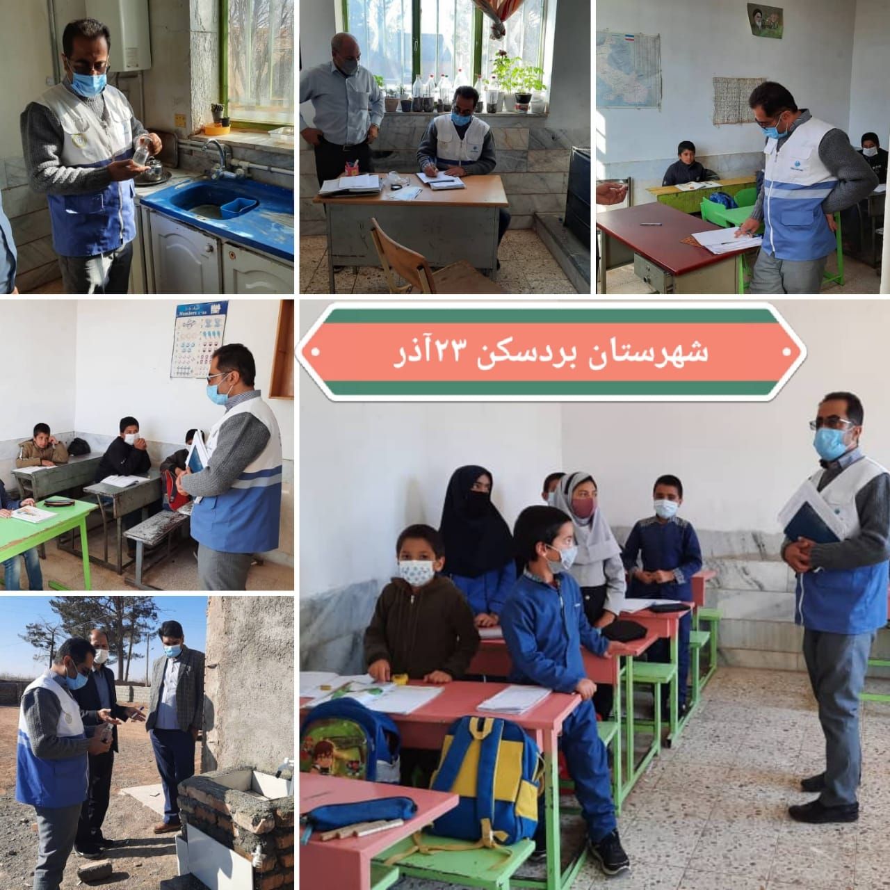 بازدید کارشناسان سلامت محیط مرکز بهداشت بردسکن از مدارس با هدف تشدید نظارت بر رعایت شیوه نامه های بهداشتی و همچنین کنترل واکسیناسیون نوبت اول و دوم دانش آموزان و معلمین در بیست و سومین روز از آذرماه ۱۴۰۰