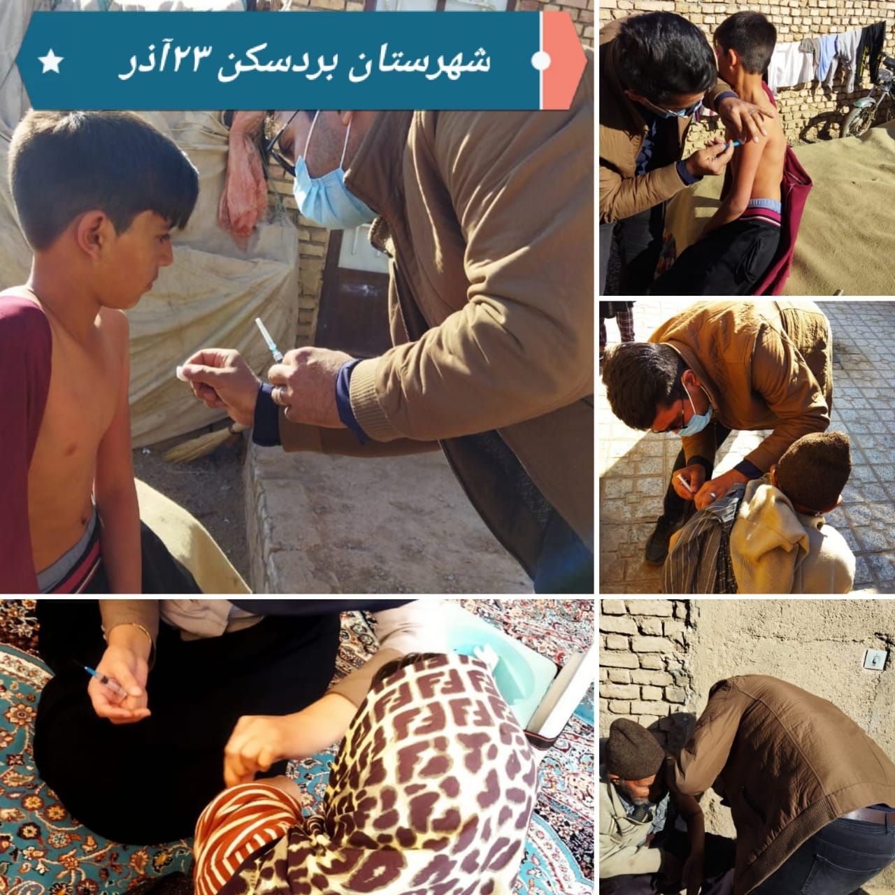 انجام واکسیناسیون خانه به خانه توسط بهورزان و مراقبین سلامت خانه های بهداشت و مراکز خدمات جامع سلامت شهرستان بردسکن در ۲۳ آذرماه ۱۴۰۰