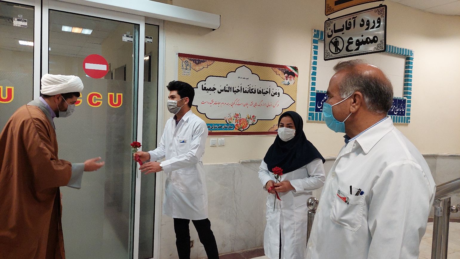 به مناسبت هفته پرستار مدیر محترم حوزه علمیه شهرستان بردسکن و همکاران با حضور در بیمارستان ولی عصر (عج) از مقام شامخ پرستاران با اهدا شاخه گل تجلیل به عمل آوردند.