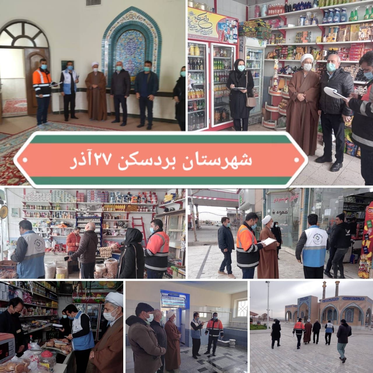 بازدید مشترک کارشناسان سلامت محیط و کار مرکز بهداشت شهرستان بردسکن با فرمانداری ، اداره صمت ، تبلیغات اسلامی ، اوقاف از اماکن اقامتی ، اماکن عمومی ، اماکن تهیه و توزیع مواد غذایی به منظور تشدید نظارت ها بر شیوه نامه های بهداشتی و کنترل واکسیناسیون ۲۷ آذرماه ۱۴۰۰