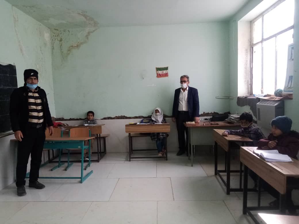 بازدید از مدارس روستای های خنجری و شریف اباد با حضور مدیر مدرسه و بهورزان تیم سیار بررسی استفاده از ماسک، رعایت فاصله اجتماعی در کلاس ها ، بازدید سرویس های بهداشتی و مواد ضد عفونی کننده محیط و دست ها انجام گرفت و کمبودها و مشکلات مورد بررسی قرار گرفت.