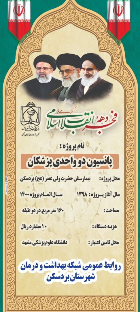 همزمان با دهه فجر صورت گرفت افتتاح ساختمان پانسیون دو واحدی پزشکان در بیمارستان ولی عصر (عج) شهرستان بردسکن
