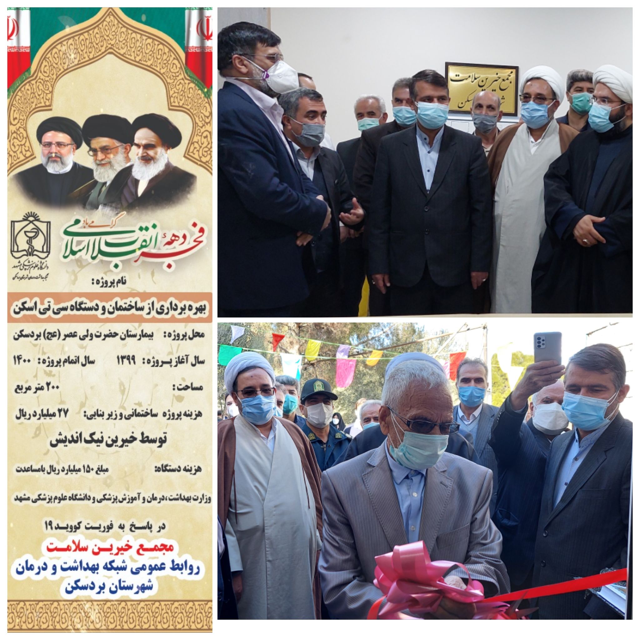 با حضور ریاست محترم دانشگاه علوم پزشکی مشهد صورت گرفت : افتتاح ساختمان و دستگاه سی تی اسکن بیمارستان ولی عصر (عج) شهرستان بردسکن