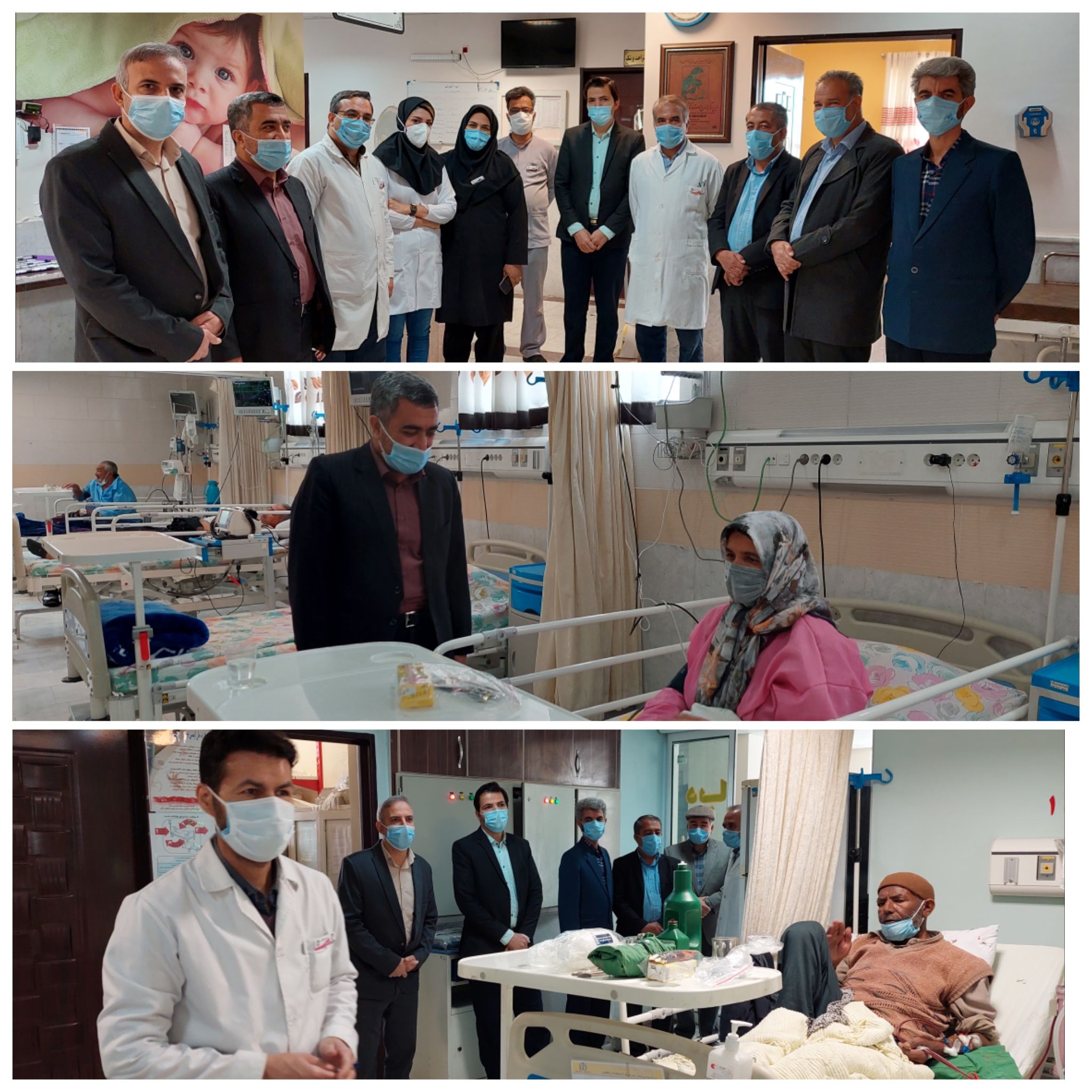 عیادت از بیماران بستری و توزیع پذیرایی به صورت بسته بندی شده و عرض تبریک این روز توسط مدیریت محترم شبکه بهداشت و درمان شهرستان بردسکن.