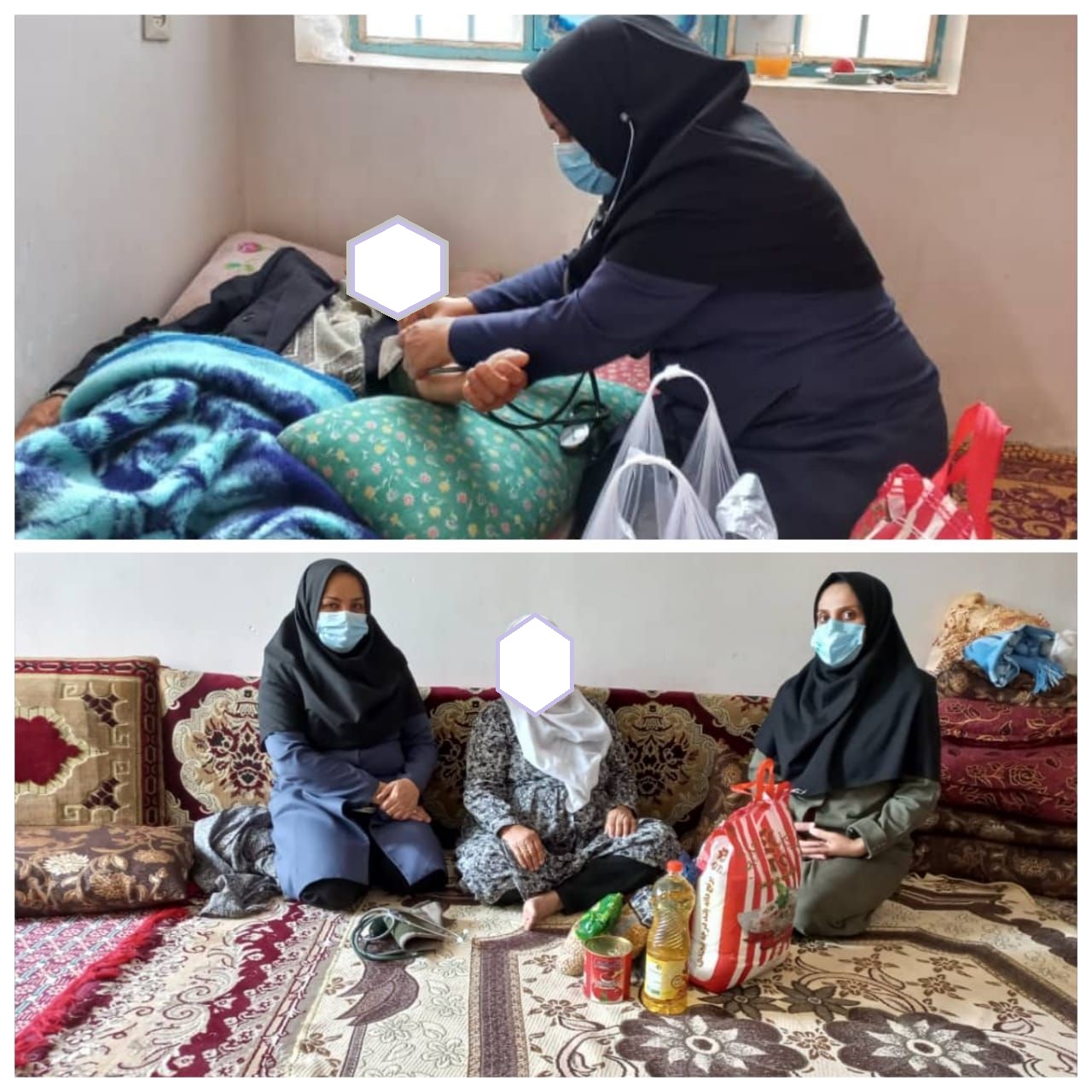 کارشناس محترم واحد سلامت خانواده با همکاری واحد محترم خیرین سلامت شبکه در راستای اجرای طرح قرنطینه معکوس با حضور درمنزل دو نفر از سالمندان ضمن عیادت از ایشان سبد کالا را اهدا نمودند
